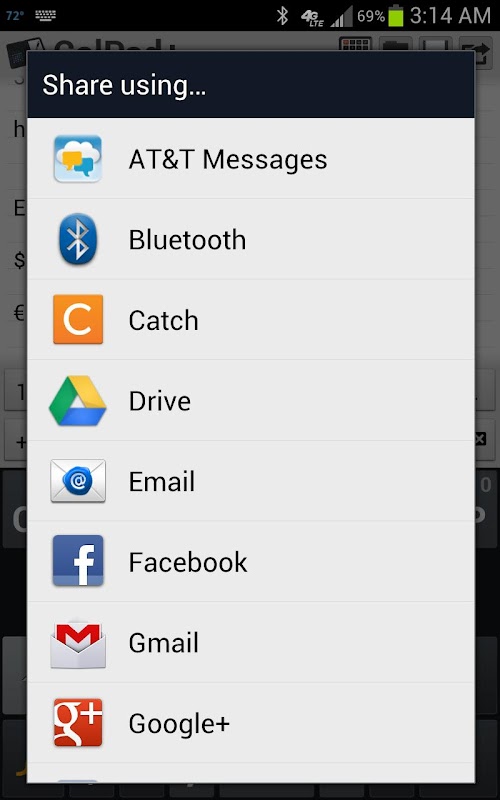 CalPad + hilft Ihnen, Berechnungen durchführen und an der Seite von Notizen. Sie können sie in eine Textdatei auf dem Gerät speichern oder sie per E-Mail, SMS oder online teilen.