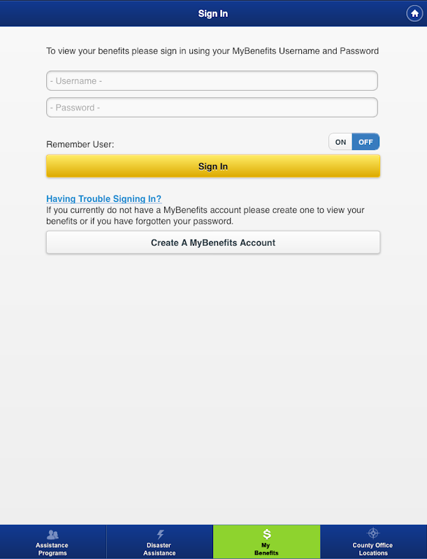 Die mobile Anwendung ermöglicht es Ihnen, Ihre laufenden Leistungen zu prüfen, wo immer Sie sind, wann immer Sie wollen. Hier erhalten Sie Informationen über die Hilfe-Programme. Finden Sie eine Grafschaft Human Services-Büro in Ihrer Nähe. Oder ob eine Katastrophe in Ihre Postleitzahl erklärt worden.