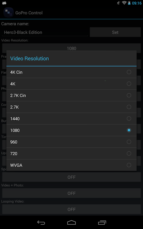 Die GoPro Camera Control App bietet schnellen und einfachen Zugriff auf Ihre GoPro Hero 2 (mit Wifi BacPac) und Hero 3 White/Silver/Black Edition direkt von einem Android Gerät. Diese App ist gedacht als Alternative für Benutzer die mit der original GoPro App nicht zufrieden sind.