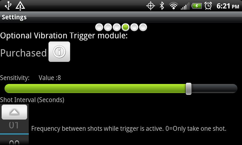 Vibration Trigger - Take pictures when ever your phone senses vibration above a certain setting.