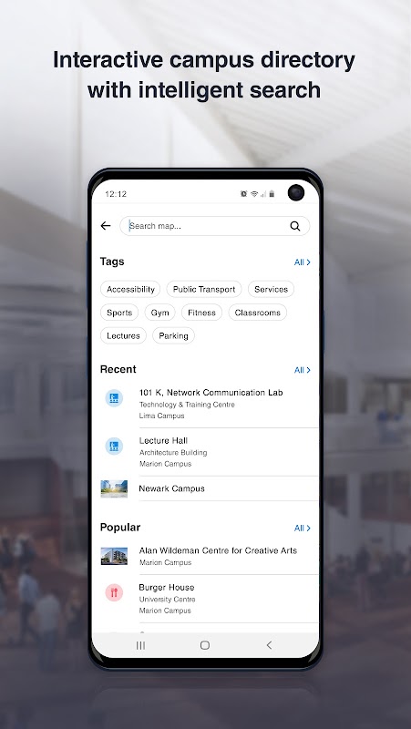 Die intelligente Suchfunktion von CampusGo macht es Ihnen leicht, die gewünschten Unterrichtsräume, Veranstaltungen und Dienstleistungen zu finden. Mehr als nur eine großartige Campus-Navigations-App können Sie das interaktive Verzeichnis von CampusGo verwenden, um Restaurants im Food Court zu finden, herauszufinden, welche Veranstaltungen rund um den Campus stattfinden, und den besten Weg wählen, um Ihren Weg dorthin für ein müheloses All-in-One zu navigieren Campus-Erlebnis-App. Sie können auch nach Kategorie oder Namen suchen, um die Veranstaltungen zu entdecken, die Sie interessieren könnten, und den Campus mit einer der besten heute verfügbaren Campus-Apps auf eine ganz neue Weise erkunden.