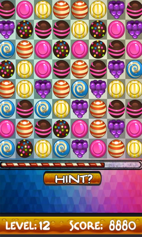- Classic Mode: Pass each candy level as quickly as possible, see how high you can get without using all your hints!