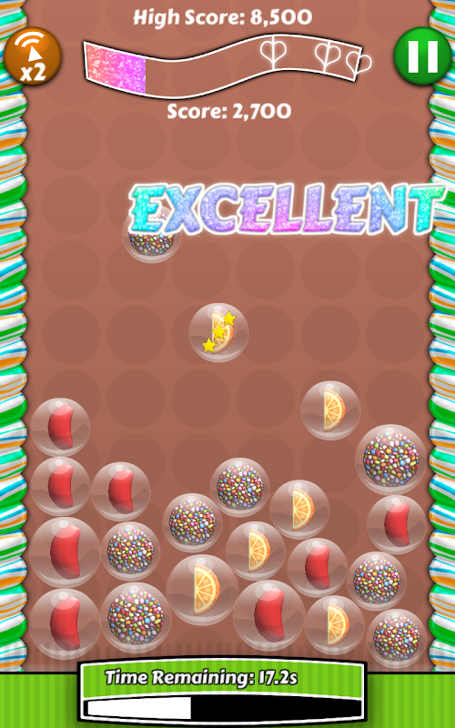 Love candy match 3 games - but are bored of the same old square grids and pieces - then this game is for you! A totally new way to match candy pieces - draw a line between pieces as they fall and bump their way down the screen. Candy Bubble Drop takes advantage of the processing power of your mobile device to deliver a unique physics based match 3 game. Different levels objectives add to the mix, providing a new approach and a lot more fun!