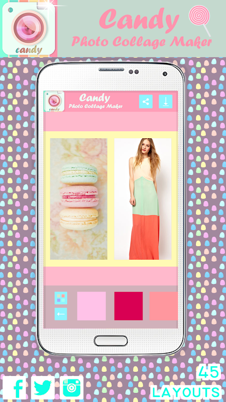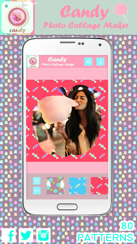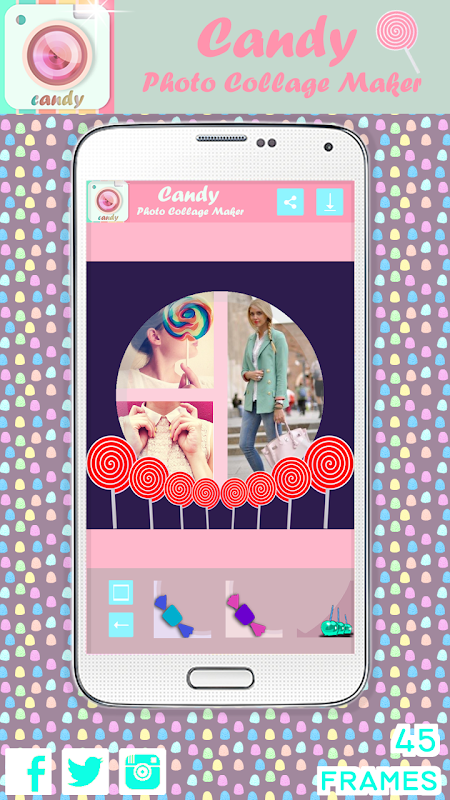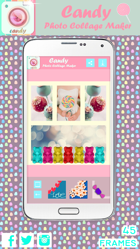 Es gibt nicht eine einzige Sache, die ein Candy scheint nicht besser zu machen, außer vielleicht bei unserem nächsten Besuch beim Zahnarzt. Mit dieser auf Zweck haben wir ein Fotobearbeitungsprogramm, das alles was Sie brauchen Ihre Bilder noch schöner enthält erstellt. Es bietet verschiedene Fotoeffekte, eine breite Palette von Layouts und Vorlagen. Und wenn Sie den letzten Schliff addieren möchten, können Sie einen der zahlreichen Rahmen und Grenzen Anwendung. Diese Bildbearbeitung und Collage Maker ist mit einer Vielzahl von Tapeten und Hintergründe, die speziell für Süßigkeiten Fans und Liebhaber gemacht werden ergänzt. Egal, ob Sie gummi Würmer oder Bären, Lutscher, M & Ms, Pralinen oder Bonbons Stöcke mag, wir sind sicher, dass Sie gehen, um es zu lieben, so wie wir es lieben. Es wird eines der köstlichsten und Lieblings-Apps überhaupt!