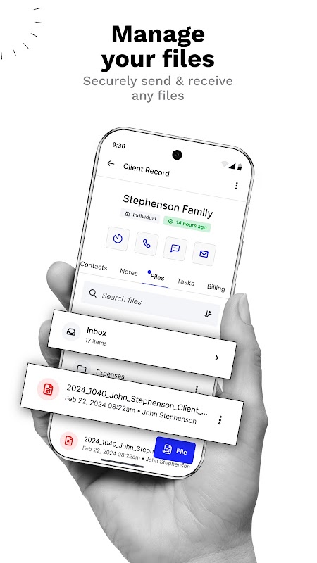 Seien Sie für jeden Mandanten, jeden Anruf beim Finanzamt oder jedes Firmengespräch vorbereitet – mit mobilem Zugriff auf Ihre Dateien. Überprüfen, kommentieren, scannen und speichern Sie Ihre Dateien ganz einfach. Laden Sie sogar Fotos aus Nachrichten oder Dateispeicher-Apps hoch – ganz einfach.