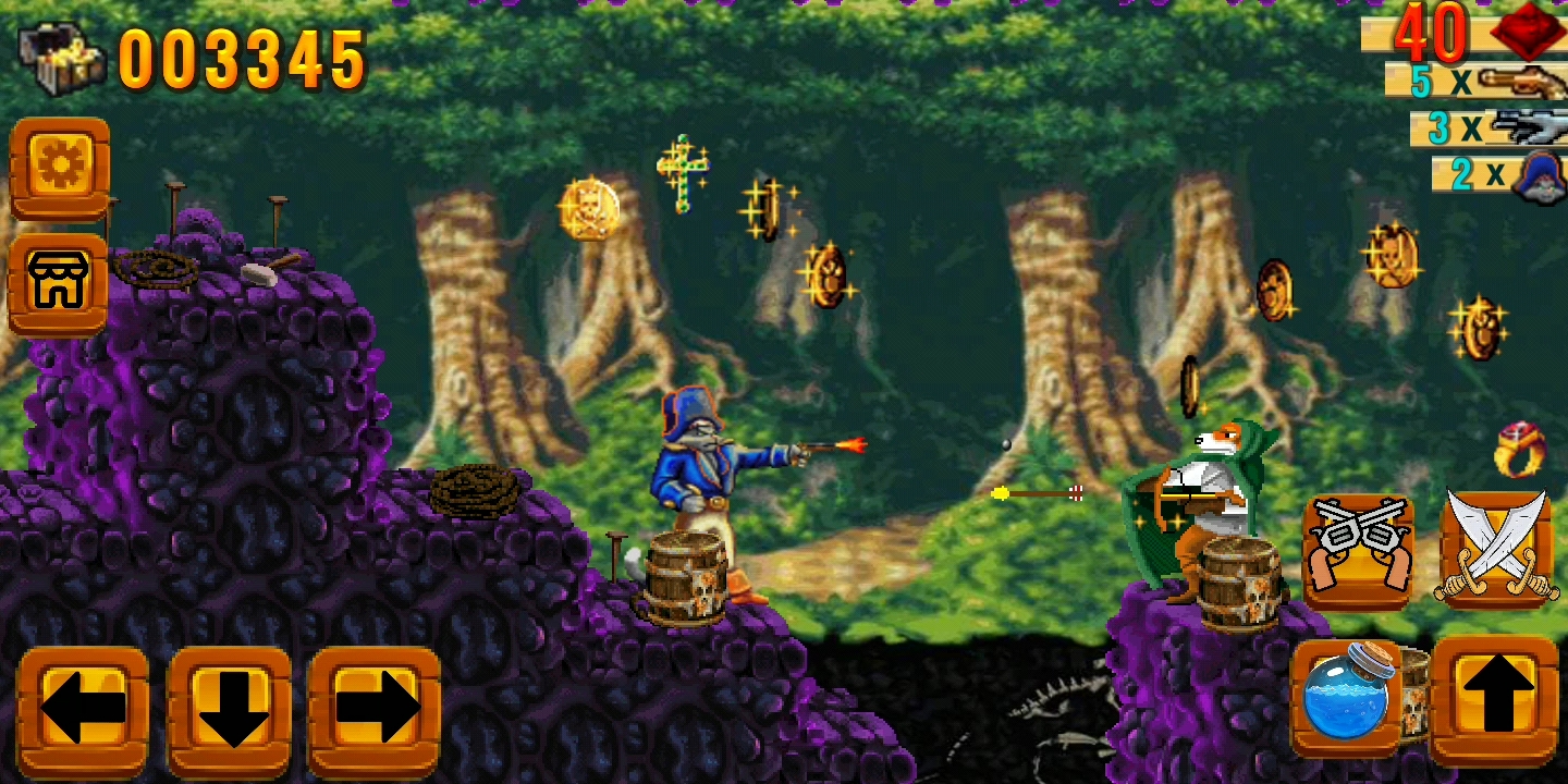 Hilf Captain Claw, die Feinde zu besiegen und Schätze zu sammeln