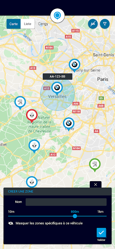 - Erstellen Sie Geofencing-Zonen um einen Punkt zum Abfangen von Fahrzeugen