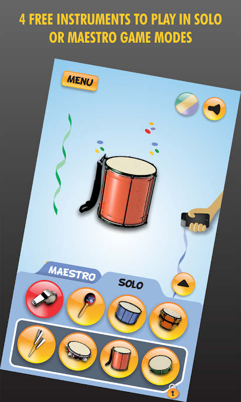 Gather your friends, pick your favorite instrument and feel the groove of the Brazilian Carnival. You can choose from the authentic agogo, apito, ganza, pandeiro, cuica and more!