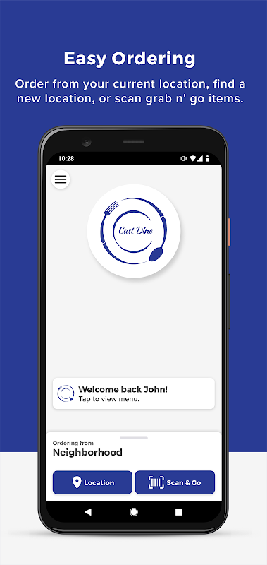 Frühstück, Mittagessen oder jederzeit dazwischen; Cast Dine stillt Ihr Verlangen. Egal, ob es sich um einen Kaffee zum Start in den Morgen oder eine dringend benötigte Mittagspause handelt, Cast Dine ermöglicht es Ihnen, schnell und nahtlos zu sehen, welche köstlichen Angebote heute erhältlich sind. Stöbern Sie in den Tagesangeboten oder bestellen Sie Ihre bestehenden Favoriten nach - einfach und unkompliziert. Mit Cast Dine können Sie mit anpassbaren Menüs und Empfehlungen des Küchenchefs ganz nach Ihren Wünschen bestellen. Halten Sie Ihre Artikel bereit, wann und wo Sie sie brauchen, indem Sie einfach die Zeit und den Ort auswählen, an dem Sie Ihr Essen abholen möchten. Tippen Sie schnell auf und bezahlen Sie mit flexiblen Zahlungsoptionen, und Sie sind bereit für Ihren anstrengenden Tag.