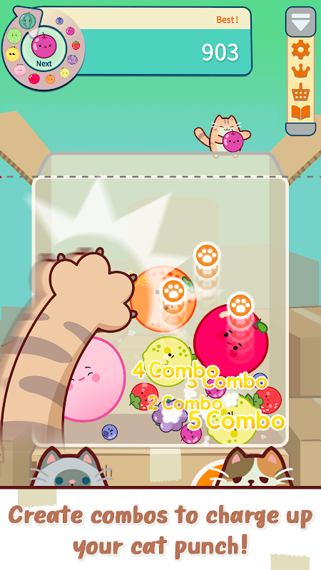 Erstelle Combos und lade deinen Katzenschlag auf! Ein Früchtepuzzle mit einer speziellen Combo!