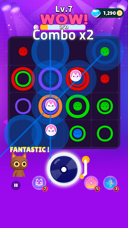 - Wenn du die gleiche Farbe in einer Reihe anordnest, verschwinden die Ringe.