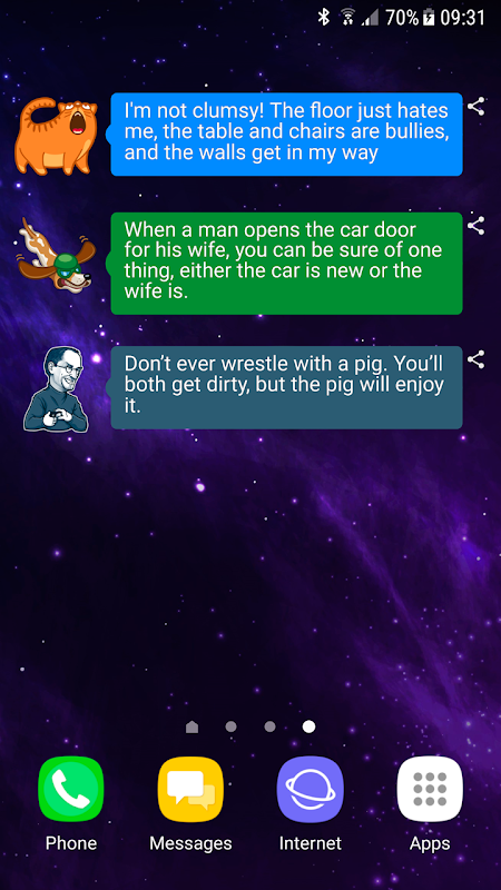 Die Stimmung fiel? Möchten Sie Ihre Freunde mit einer cleveren Idee überraschen? Dieses kleine Widget hilft Ihnen, eine fröhliche Stimmung zu halten und Sie über die Hauptsache denken!