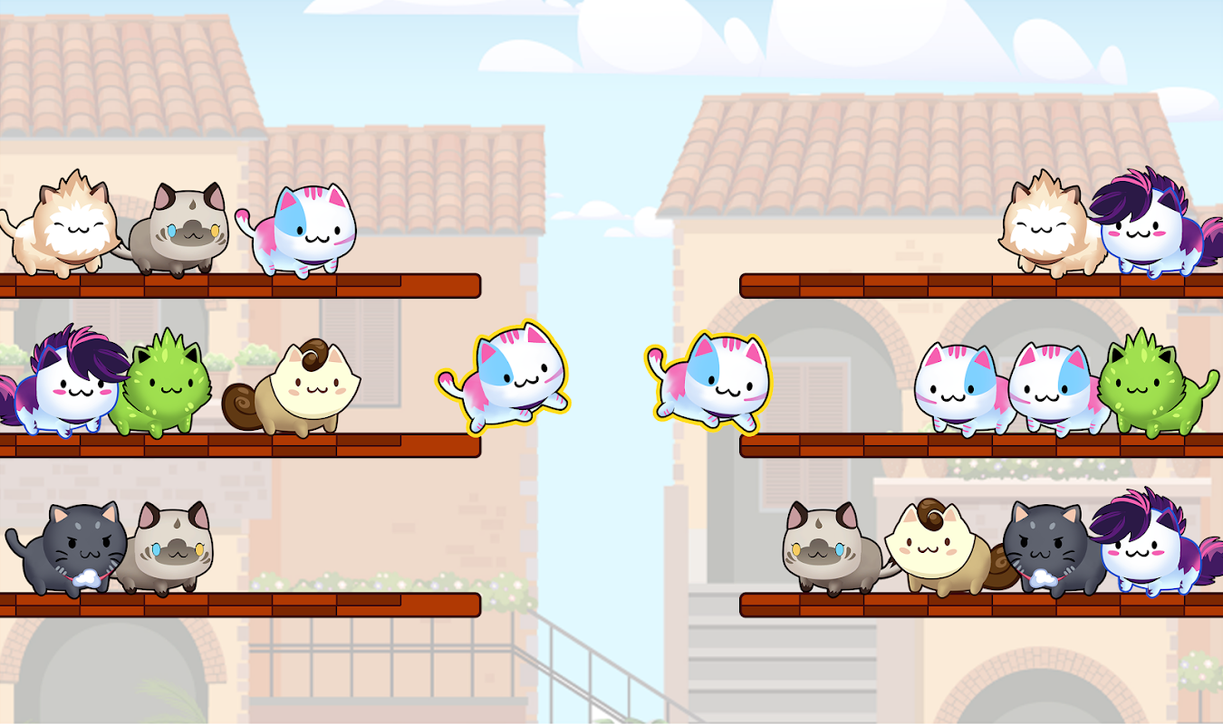 Cat Sort Puzzle's requirements are concentration, logical thinking, and excellent skills with a unique strategy to match colorful cats.