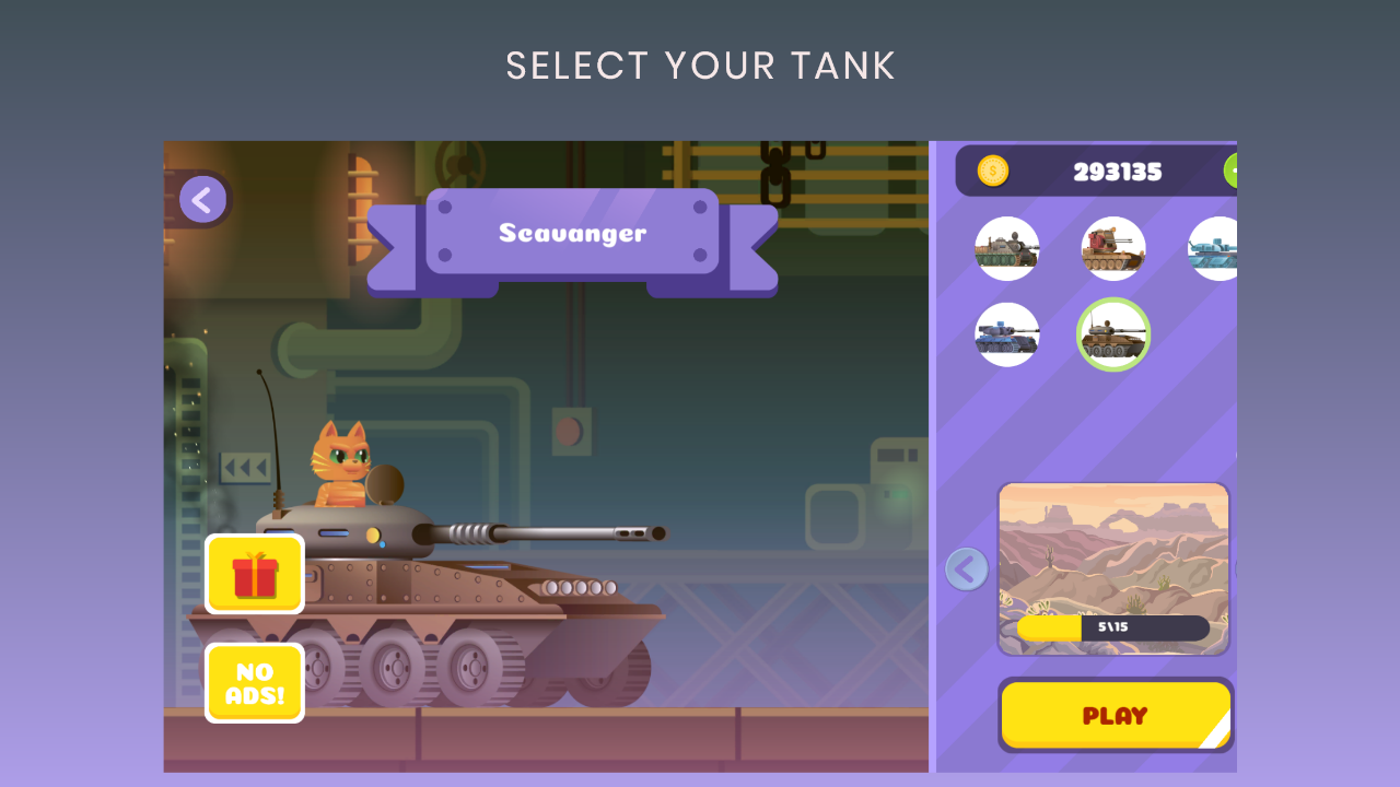 Genieße das Spiel mit Panzern und verschiedenen Raketentypen. Beginnen Sie mit einem Panzer, besiegen Sie Ihren Feind und gewinnen Sie Münzen.