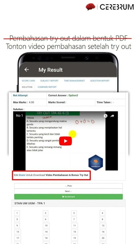 Untuk daftar try out di aplikasi cereout, kamu harus mengikutinya dengan paketan. Bayar 1 kali untuk try out 15-22 kali dalam 1 bulan. Kami membuka pendaftaran try out 1 bulan sekali, selengkapnya, kamu bisa hubungi admin kami saja untuk daftar try out : www.cerebrum.id/kontak