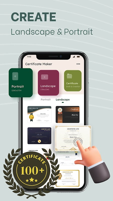 1. Wählen Sie Hoch- oder Querformat, um ein Zertifikat zu erstellen.