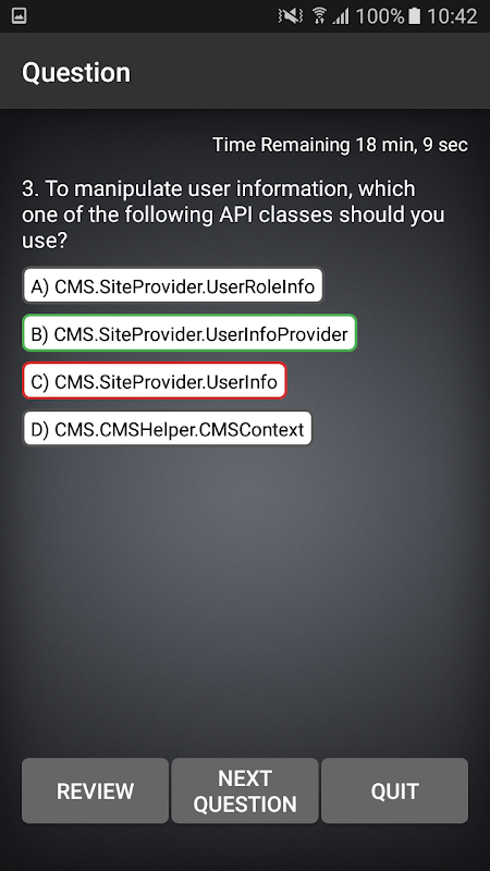 This app simulates a real certification exam with the latest questions and correct answers. Review your answer immediately and prepare more effectively for exam.