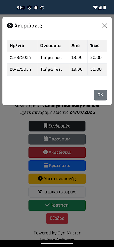 Mitglieder können die Gruppenkurse des Fitnessstudios buchen und ihre Mitgliedschaften, Buchungen und Anwesenheiten einsehen.