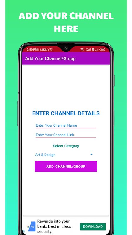 You would also be able to add your Channels and groups in this app.