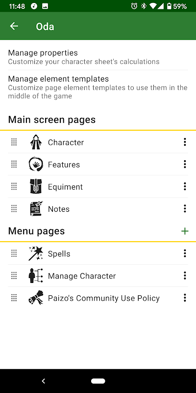 Anpassung – Alles lässt sich anpassen. Füge deinem Charakterbogen Seiten, Eigenschaften und Seitenelemente hinzu.