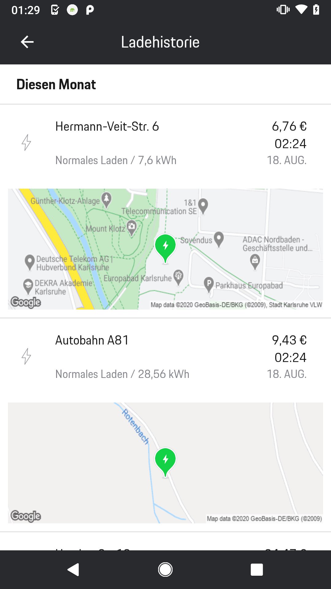 Zusätzlich fallen Kosten je Ladevorgang an. Diese können je nach Ladevorgang unterschiedlich sein und in der App eingesehen werden.