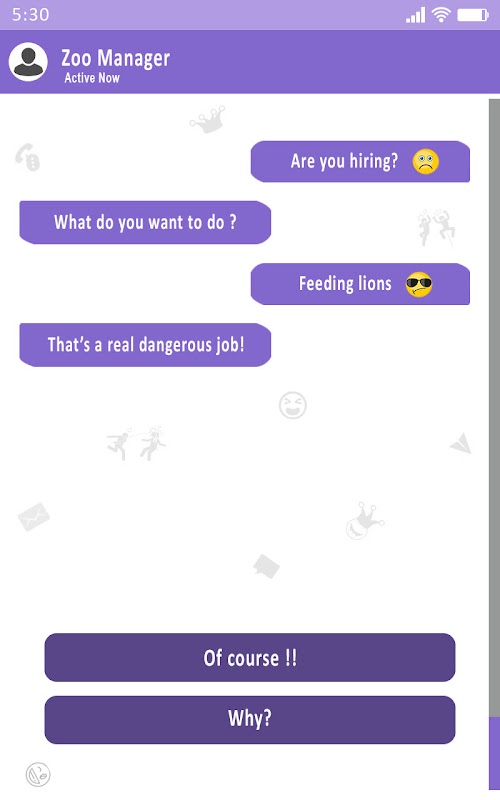 Prank-Chat bringt Sie in eine Vielzahl von Situationen, in denen Sie die Möglichkeit haben, zu antworten, entweder Sie können ehrlich sein oder Sie können gerissen sein. Sie können gefälschte Gespräche mit Ihren Freunden führen! Sie können Ihren Freunden Witze machen und auch mit dieser Chat Master: Prank Chats and Texts App können Sie schwierige Situationen leicht loswerden. Daher bieten diese SMS-Spiele die Möglichkeit, diese lustigen und gefälschten Streich-Chat-Momente auf unterhaltsame Weise zu genießen. Genießen Sie also den gefälschten Chat-Streich und werden Sie der Chat-Meister der Welt. Erstellen Sie kleine Streiche für Ihre Kumpels und wählen Sie in diesen gefälschten Chat-Spielen die richtige Option des vorgegebenen gefälschten Textes, um Ihren Kumpel verrückt nach Ihren Streichgenies zu machen!