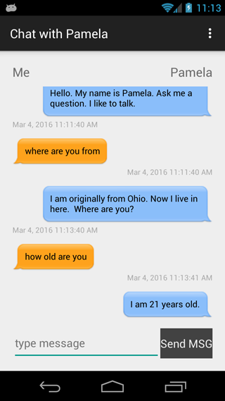 Chatbot Mädchen wird, Chat und Text sprechen. Frag sie nichts. Sie reagiert immer.