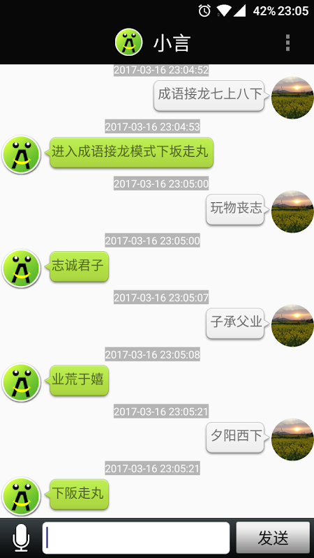 聊天机器人小言会讲笑话、讲故事、成语接龙、天气查询、智能对话、数学计算、简单英语翻译、脑筋急转弯等;可以改变发音音色,会说四川话、广东话、东北话、湖南话、陕西话、河南话等六种方言;您可以选择您爱听的方言;