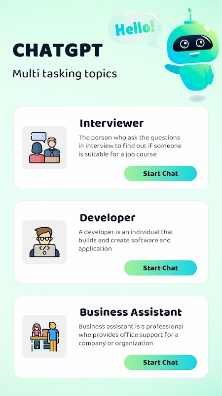 ChatGPT ist ein Chatbot mit künstlicher Intelligenz und fortschrittlicher Technologie. Die erste App, die das chatGPT 3.5-Turbomodell verwendet. Erhalten Sie sofortige und intelligente Antworten mit ai chat!