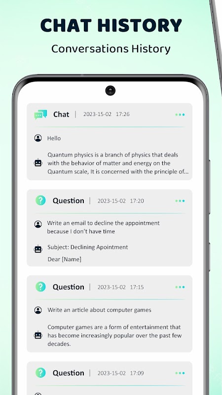 Diese mobile App ist die perfekte Lösung für alle, die Wert auf Intelligenz und Komfort legen. Nutzen Sie Chatbot-KI, um zu übersetzen, Musik zu schreiben, Grammatik zu bearbeiten, Aufsätze zu bewerten, mathematische Probleme zu lösen, Finanz-Chatbot, Banken, die Chatbots verwenden, Chatbots im Bankwesen.