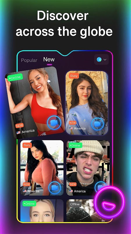 Erkunde und live Video-Chat mit zufälligen Fremden, finde Freunde und lerne Leute kennen.