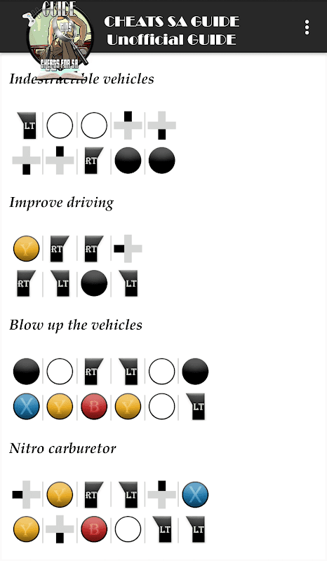 Cheats For SA (Unofficial Guide) is a very simple and reliable application that contains the best codes and tips for SA.