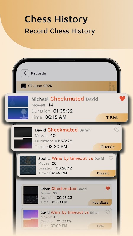 • Markieren Sie ein Schachmatt mit nur einem Fingertipp – die Ergebnisse werden mit Zugzählung gespeichert.