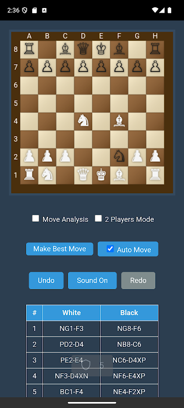 Mehrere Spielmodi: Spielen Sie Schach für 2 Spieler, kämpfen Sie gegen die KI mit einstellbarem Schwierigkeitsgrad oder nehmen Sie an Online-Spielen teil.