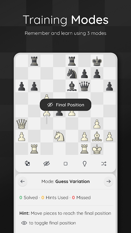 - Eröffnungsvarianten trainieren mit drei Modi.