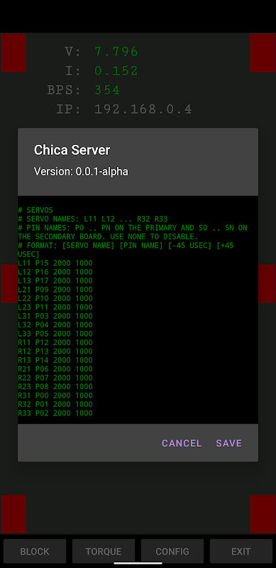 Chica Server ist eine App, die einen Hexapod-Roboter steuert.
