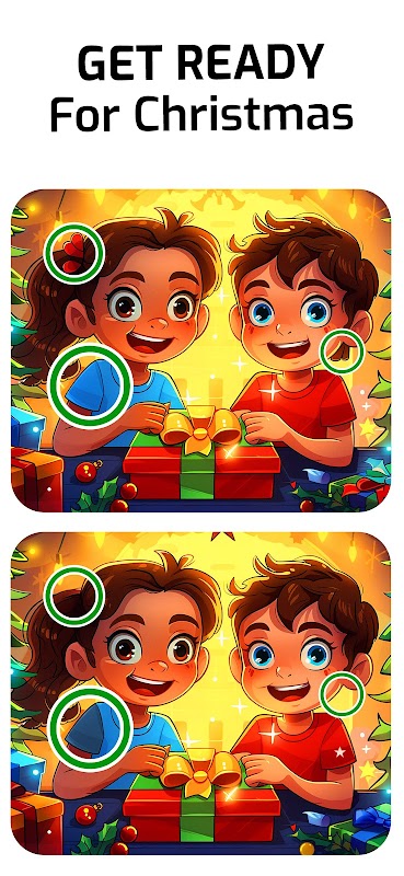 • Weihnachtsmusik: Beruhigende Weihnachtsmusik erklingt, während du die Unterschiede findest, und sorgt so für festliche Stimmung.
