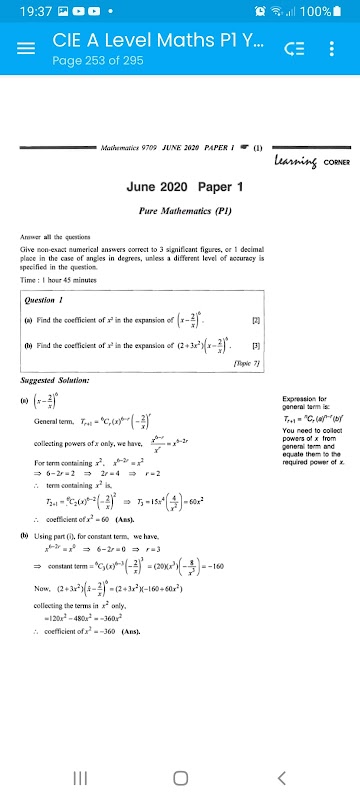 Ausführliche Arbeitslösungen für CIE A Level Maths P1 Yearly 9709