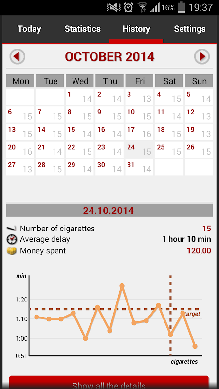 Holen Sie sich Ihre Rauchen unter Kontrolle! Anzahl der Zigaretten, Diagramme, Statistiken ...