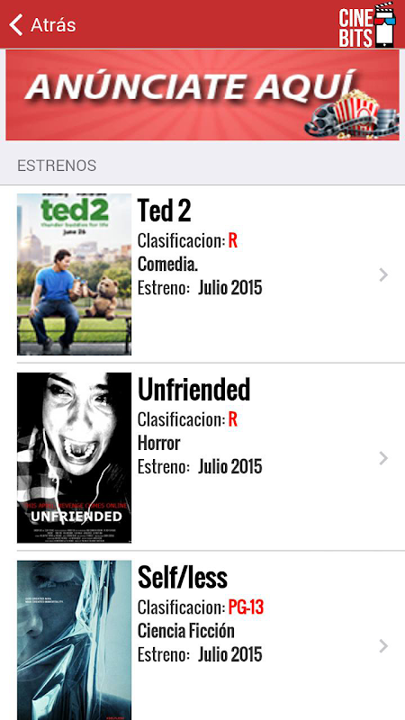 En la app puedes ver el trailer de la película, la clasificación de IMDB y lo más útil... los horarios!