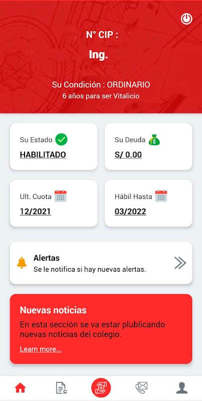 Pagos de Cuotas de Colegiados, Emisión de Certificado de Habilidad Profesional y Servicios Generales del CIP. Junin.