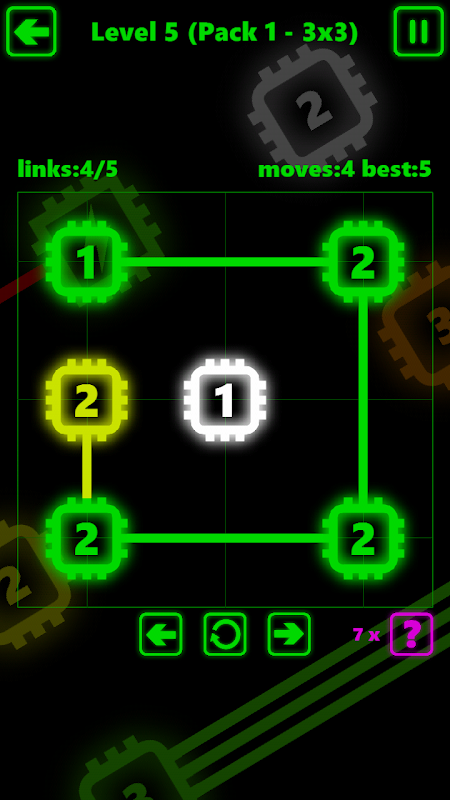 Connect all of the chips to create a circuit and complete each level. All chips must be linked together and each chip must have the required number of connections to other chips.