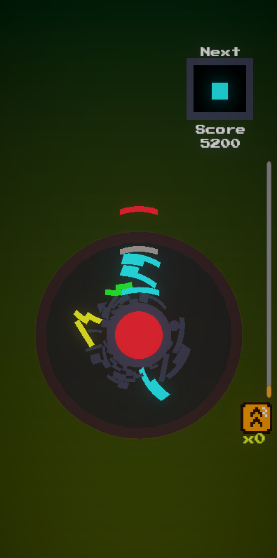 - Kombiniere 4 Blöcke der gleichen Farbe, um Punkte zu erzielen, und verkleinere den Kreis.