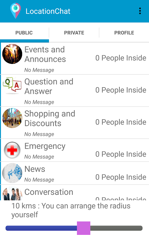 •Chat with people within a radius you pick in both public rooms and private rooms!