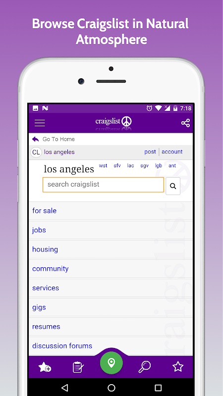 Classifieds for Craigslist wurde als tragbare Lösung für die Website Craigslist.org entwickelt, um das Verständnis, die Erfahrung und die Beteiligung der Benutzer zu verbessern. Die App funktioniert wie ein gewöhnlicher Browser und sammelt keine Informationen.