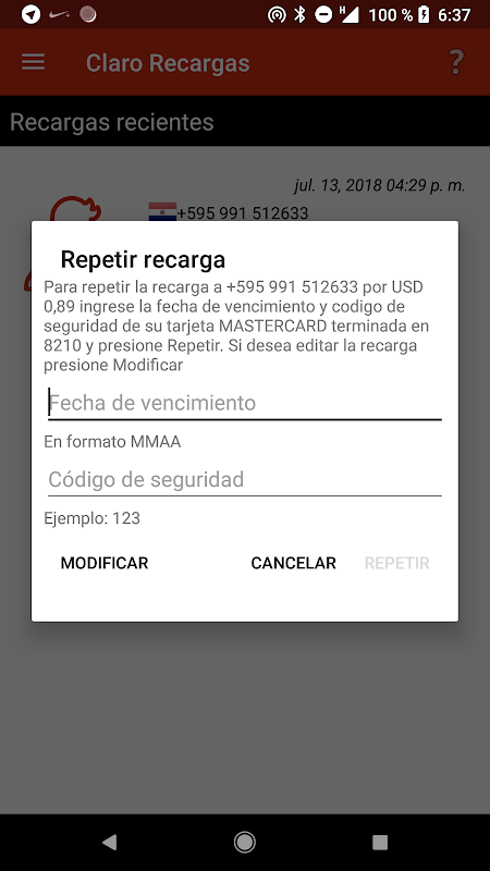 Además, puedes guardar tus teléfonos recargados y tarjeta de crédito o repetir las últimas recargas en un simple paso.