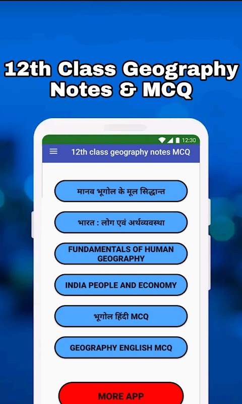 Klasse 12 Geographie Notizen in Hindi NCERT Solutions App wurde speziell für die CBSE Klasse 12 Schüler entwickelt, um ihnen bei der Vorbereitung auf ihre Prüfungen zu helfen. Es hilft ihnen auch das ganze Jahr über, ihre Hausaufgaben pünktlich zu erledigen und die Antworten zu überprüfen.