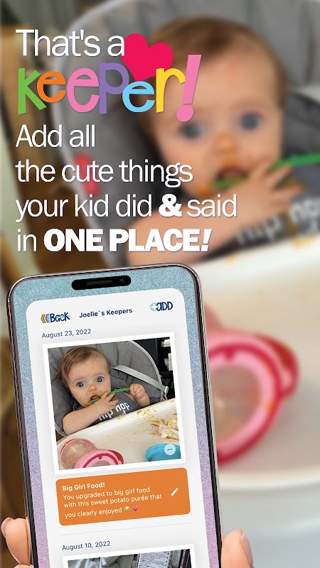 • Buh-Bye-Behälter. Erstellen Sie ein digitales Portfolio mit den Kunstwerken und anderen Erinnerungsstücken Ihres Kindes. Machen Sie einfach ein Foto und fügen Sie es ihrem Profil hinzu. Behalten Sie die Erinnerung, ohne Chaos oder Stress!