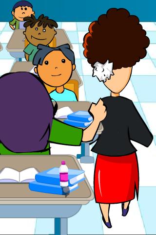 Make them to hit the teacher, with the objects displaying at the left corner of the screen. Make sure you are not