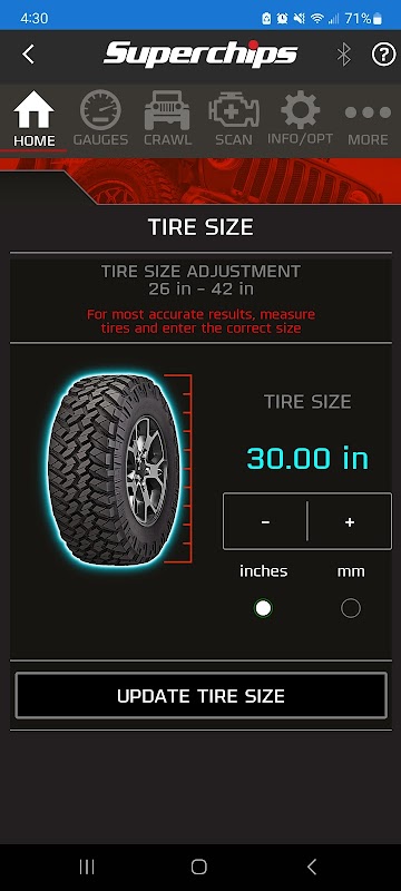 Jeep® Wrangler gehören heute zu den am stärksten modifizierten Fahrzeugen auf der Straße. Jedes Mal, wenn Sie Reifen, Räder oder Gänge wechseln, benötigen Sie eine Tachokorrektur. Superchips Flashcal+ für Jeep® ist das einfachste Reifen- und Getriebekalibrierungstool auf dem heutigen Markt. Ausgestattet mit den Funktionen, die Sie benötigen, ist Flashcal+ für Jeep das ideale Tool, um Ihnen die Optionen zu bieten, die Sie auf der Straße oder abseits der ausgetretenen Pfade benötigen. Fahren Sie nicht, ohne Ihre wahre Geschwindigkeit zu kennen, nutzen Sie TPMS ein/aus und erkunden Sie alles, was Flashcal für Jeep® für Ihren JK und JL Wrangler zusammen mit Ihrem JT Gladiator zu bieten hat. Um die Datenschutzrichtlinie einzusehen, besuchen Sie https://superchips.com/flashcal-privacy/